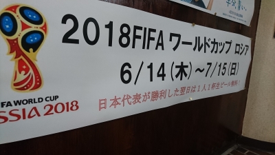 JUGEMテーマ:サッカーワールドカップ 2018年6月14日 FIFA サッカーワールドカップ ロシアが開幕しました!! 岩寿荘では日本代表が勝利した翌日は 宿泊のお客様対象に生ビールが一人1杯無料になります!! 日本代表の試合日19日、24日、29日。 日本代表が勝利した場合は20日or25日or30日が 生ビールサービスデーとなります。 日本代表が決勝トーナメントに進みましたらもっとビール無料デーが増えますね♪ 岩寿荘ロビーではもちろんワール...