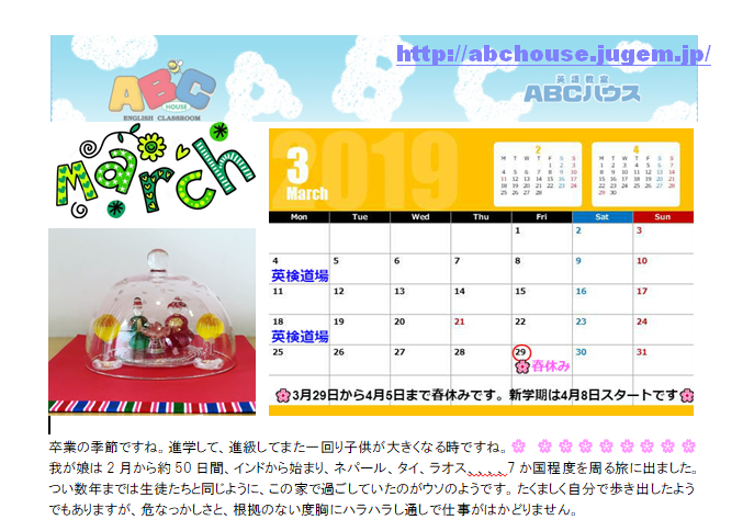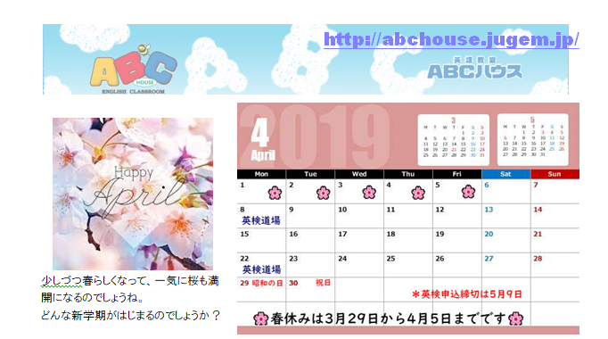 ABCハウス・・・ 英語教室 ABCハウスから | 2019.05.13 Mon 12:44