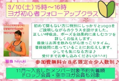 皆さん、こんにちは 今年に入ってブログ初担当103インストラクターのMiyukiです 今年は戌年です今年もNo YogaNo Lifeワンダフルな1年にしていこうと思います 前回の更新でもお伝えしましたが、ヨガ指導者養成講座2018説明会が3月10日に 決定しました ヨガが大好きな方、ヨガに興味ある方、是非いらしてくださいね その一歩で人生大きく変わりますよ そして3月10日(土)同じ日に初心者フォローアップクラスも開催されるんです 今回は私もこのクラスのお手伝いをさ...