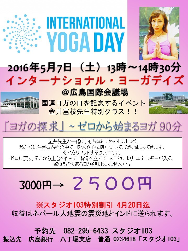 広島 ヨガ教室 スタジオ103 ★ HAPPY YOGA ブログ ★ | 2016.04.21 Thu 14:19