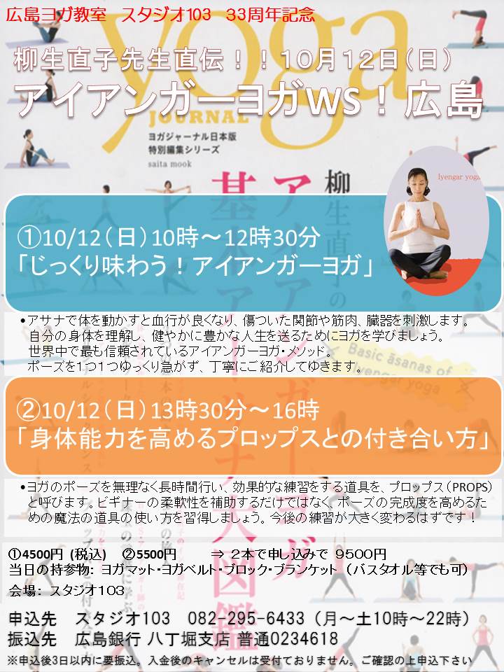 柳生直子先生による5年目の広島WS☆逢うだけで、ヨガについての取り組み方をブラッシュアップするだけにとどまらず ヨガ指導者としての在り方に、気づきの光を照らしてくれる素晴らしい先生です今年は2本立て最近はフェイスブックでリアルタイム投稿ができるので便利ですね 投稿 by 広島ヨガ スタジオ103 〜 Jay 日本ヨガ連盟.キープするだけがアイアンガーヨガではない投稿 by 広島ヨガ スタジオ103 〜 Jay 日本ヨガ連盟.30年前にアイアンガー先生はお会いした時から 今年お亡くなりになるまで自...