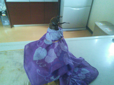JUGEMテーマ:親爺の独り言 婆がひょんなことで、カブト虫をもらってきました。500mlのペットボトルを二つ割に切って、中に枯れ木をいれてあります。それを、ハンカチで蓋しておいたのですが、調理台においてものの5分でこのありさま。 もっとも、土の中から出てくることを思えば、屁のカッパってとこですかね。今、虫かごに入ってます。たしか・・・・・。