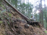 JUGEMテーマ:きこり 今日のお天気は夕方から雨の予報でした。 バックホーを山から降ろすかどうか悩みましたが、 シートをかけて山に残すことにしました。 本日搬出する風倒木ヒノキ。 一本目より一回り細い。 どの位置から玉切りするか・・・ 結局根元から1メートルの位置で切ることに。 予想として切ると元が立ち上がるかも。 実際その通りとなりました。 ...