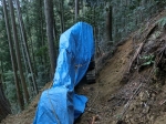 JUGEMテーマ:きこり 風倒木ヒノキの処理と作業道の整備の続き。 2本の風倒木ヒノキが作業道を塞いで、 林内車の通行を妨げているから材が下ろせない。 2017年10月の台風21号被害から丸2年。 早く片付けないと材が腐ってしまう。 同時に作業道の補修もしないと材を搬出する林内車が使えません。 今日までにやっと1本片付けました。 今日は作業道の補修。 ヘアピンカーブの部分。 ずっと以前に斜面が抜けた箇所です。 かなり無理をして作った道なのでたくさん雨が降ると心...