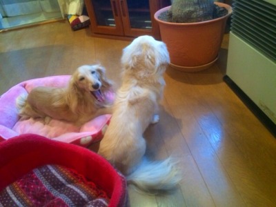 JUGEMテーマ:徒然なるままに。 今朝は、またまた ヒーターの風を受けながら のんび〜りな ハニーとくっきー。 予報では雪マークでしたが 午後晴れ間が見えたので ご近所散歩に繰り出してみました。 ・・・途中、ばらばらと 硬い粒の雪が降り始め、即退散 家の前でおやつをあげて 中に戻りました。 その後、静かに雪は降り続け 外は白い景色になりつつあります。 「いよいよだね〜。」 ...