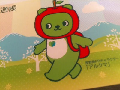 JUGEMテーマ:徒然なるままに。 今日、アルクマちゃん柄の 通帳を作りました。 長野県PRキャラクター のアルクマちゃん。 クマなのに寒がりで いつも頭にかぶりもの・・・ で、ここではりんごのかぶりもの (とてもわかりやすい!) クマなのに旅好きで いつも背中にリュックサック。 信州をクマなく歩きまくり、 信州の魅力を世の中に クマなく広めるのが生きがい ・・・なんだそうです。 かなり好みかもしれません(笑) ...