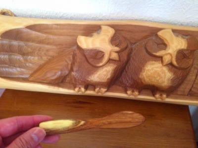 JUGEMテーマ:徒然なるままに。 先月の八ヶ岳マルシェ@原村で 木製のバターナイフを購入しました。 バターケースにすっぽり入るサイズで 軽くてとても使いやすく とっても重宝しています♪ いろいろな種類の木を使って 作られているバターナイフの中から えんじゅという木のものを選びました。 表面と中の色が違っていていいなぁ と思ったのと硬いと伺ったので えんじゅのバターナイフに決めたのです。 ・・・家に帰ってトーマスに えんじゅのバターナイフを見せると 『壁掛けと...