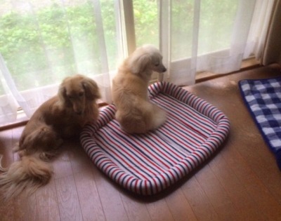 JUGEMテーマ:徒然なるままに。 今朝、ガラスの向こうに 何かを発見した 我が家の熟女2ぴき。 がうがう吠え続け 少し暴れ始めました。 先日、同じように 2ぴきが騒いだときは 茶色いネコちゃんが 大慌てで立ち気味で 走り去っていくのが見えました。 その前は白と黒の毛色のネコちゃんが ガラス越しに2ぴきの前を 横切っていきました。 ・・・今朝も大騒ぎだったので きっとネコちゃんがいるに違いない! と隣の部屋から来てみると。 ガラスの向こうにいたのは リー...