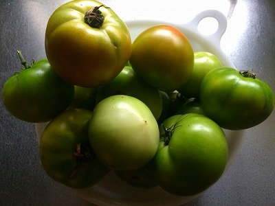 JUGEMテーマ:徒然なるままに。 青いトマトをいただきました。 ピクルスにするとよいとのことでしたが 少し赤いものと青いものとを切って にんにくを加え炒めてみました。 たくさんの酸味の中に ちょっぴり甘みがあって なかなか美味しいソテーでした♪ パスタを入れてもおいしかったかも ひとビン分、ピクルスも作ってみました。 残りはソテーして フープロにかけて 冷凍しておこうかなぁ とおもっています♪ 酸味があって カレーの隠し味などにも 合い...