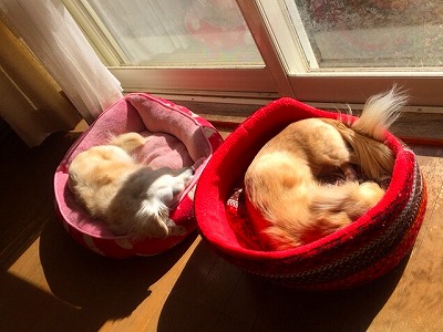 JUGEMテーマ:徒然なるままに。 今朝、ちょこっと外に出たら 雨上がりのように 地面が濡れていました。 それがみぞれ雪だったと 教えてもらったのは 昨日と同じ芝生からの帰りでした。 昨日と同じように お天気はよいのですが 山に雪が降っているように見えました。 大きいわんちゃんたちと 同じ芝生にいられて・・・ (といっても絡めませんが) いい経験になった2ぴきでした。 それからしばらく ダッシュさせていると 風が冷たくて 手袋が必要になりました。 ...
