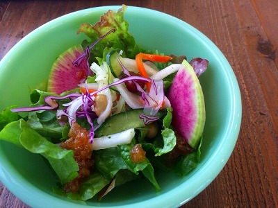 JUGEMテーマ:徒然なるままに。 先日、友人といっしょに 大好きなビーンズビレッジさんで ランチをしました 彩り鮮やかなサラダに・・・ まろやかな美味しさの 車麩のフライとなすのカレー。 最後はわらびもちと コーヒーをいただきました♪ 昨年の秋に会えたきりだった友人。 彼女は日本中を飛び回って 明るく忙しく仕事をこなしています。 そんな中、時間を共有できて いっしょに美味しいごはんを食べて 大笑いして 自分のことを 『いっぴき...