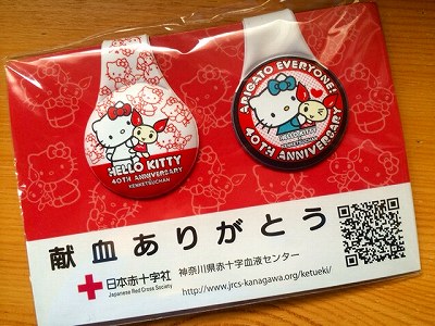 JUGEMテーマ:徒然なるままに。 先週の土曜日は 献血に行きました。 そしてポイントカードの ポイントがたまったので キティちゃんグッズを いただきました よ〜く見ると キティちゃんの40周年記念。 そしてけんけつちゃんと ハグしています マグネットになっているので ペンや小物の ホルダーとして使えるようです。 ・・・このままが とてもかわいいので しばらく使わずに 眺めていたいとおもいます。 ポーカーフェイスのキティちゃんと 表情豊かなけんけ...