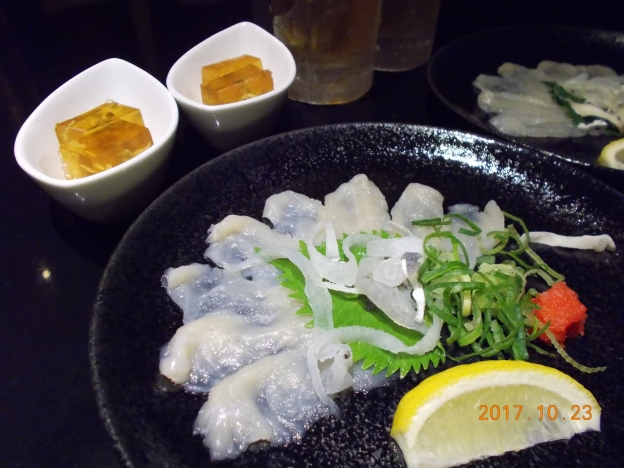 2017年 10月23日(月曜) こんにちはダンディ浅沼です 合羽橋で買い出しをしてからの こちら 「新宿ふぐ一郎」 てっさ