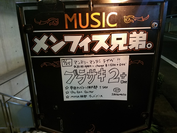 2019年 2月25日(月曜) こんにちはダンディ浅沼です 映画「アリータ」バトルエンジェルを観て 下北沢に移動 「ガスト」ハッピーアワーでハッピーになり ぷらぷらと「ヴィレッジバンガード」に寄り 立ち飲み「よっちゃん」一杯やり 今夜のメイン 向かった先の会場は 「メンフィス兄弟」 そしてライブは BLOODEST SAXOPHONE