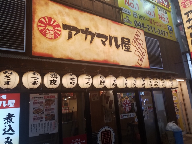 1月13日(月曜祝日) こんにちはダンディ浅沼です 川崎でプチ同窓会の2次会として 30分だけのサクッと飲みは この店 「アカマル屋」