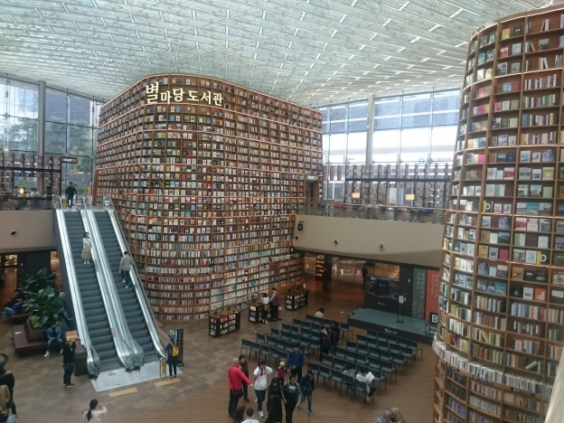 10月20日(日曜) 絶景スポット ピョルマダン図書館に行きます 通常は9号線ポウウンサ駅下車 7番出口より直結COEXモール内 もしくは 2号線サムソン駅下車6番出口より 今回ダンディはポウウンサ(寺)から 歩いて来ました 道路を渡った大きな商業施設 COEX内にあります COEXモールには映画館、水族館 グルメにショッピングととにかく凄いらしい