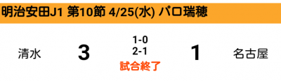 JUGEMテーマ:清水エスパルス 【入場者数】 9,774人 【得点】 44分 北川 航也(清水) 70分 石毛 秀樹(清水) 82分 ホーシャ(名古屋) 86分 金子 翔太(清水) 【出場選手】《清水のみ》 GK 六反 勇治 DF 飯田 貴敬 (→89分 DF 立田 悠悟) DF ファン ソッコ DF 二見 宏志 DF 松原 后 MF 竹内 涼 MF 河井 陽介 MF 金子 翔太 MF 石毛 秀樹 FW クリスラン (→81分 FW 鄭 大世) FW 北川 航也 (→76分 FW...