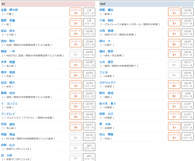 かって、オフトが監督していた頃の京都が↑みたいな編成したけど、結果は監督途中交代。 今までのサンガのスタイル考えると、一貫性の無さは大いに気になるわ。 もう対戦する事ないだろうし、関心程度だけどね(笑) それにしても親会社が大きいチームは良いよね〜 こういうラボ的な取り組みを出来るから。千葉も然り。 JUGEMテーマ:Jリーグ