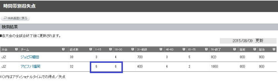 同じような失点数の両チーム。アビスパは開幕直後の三連敗で7失点と32失点の2割程度は喫している事を考えると、今の傾向は↑とは若干違うだろうけど、試合の入りが悪いというのは、ある。特に、後半戦の引き分け・敗戦では、傾向的に顕著に出ている。先ずは試合の入りを注意すること。これは、8.15の天王山では必須。前からプレスをかけてプレッシャーをかけていく時間とブロックを引いて虎視眈々とカウンターを狙う時間を上手くコントロールできたらと思う。ワンパターンな戦い方だと、ジュビロの方に利が出てくるだろうし。 ...