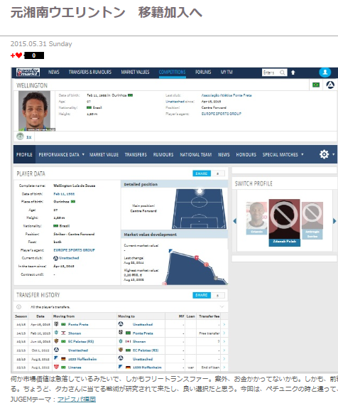 ちょうど、ウェリの加入の噂が上がってた時期。ちょうど、ブログ再開の第一号がそうやった。 今の順位的に、そろそろ補強の報が欲しい。 JUGEMテーマ:アビスパ福岡