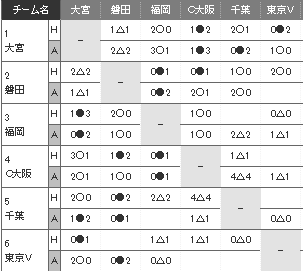 大宮 10戦4勝2分4敗 勝ち点14 磐田 09戦4勝2分3敗 勝ち点14 福岡 09戦4勝3分2敗 勝ち点15 大阪 09戦3勝3分3敗 勝ち点12 千葉 08戦1勝4分3敗 勝ち点7 東京 07戦1勝4分2敗 勝ち点7 井原アビスパは意外に上位との対戦成績良い。そして、直接対決の結果と今の順位の相関関係はある感じ。 という事でも、明日千葉を倒して勝ち点3を得ることは意義がある。 去年まで、あんなに苦手だった上位対決だったけど(笑) JUGEMテーマ:アビスパ福岡