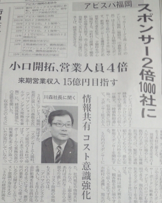 JUGEMテーマ:アビスパ福岡 書いている事は、上場企業なら至極当然な事。逆に、今までの収支で、コスト意識の希薄さは痛感しているから、アパマンさんの参入は非常に意義がある。また、社長さんはファン・サポのアビスパに対する問題点のつぶやきは全部拾っているらしいから、ここは期待出来る。俺のシーチケダブルブッキングの件じゃないけど、古株の社員に期待は持てんので。。。 未だに何の釈明も説明もない。当然、謝罪もない。これが、スポンサーとかなら対応変わるのかな(笑) 今こそ、アビスパに長年在籍している社員の意識...