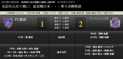 JUGEMテーマ:FC東京 最初にこちらのツイートを。 . @jfa_tennouhai FC東京サポとして、今日の試合運営は開催地、テレビ中継の点で非常に不満です。大事な試合を雑に扱われ、バカにされたようで本当に不愉快です。来季から運営を改善されるよう希望します。 #fctokyo https://t.co/e0lR6nfxzy — Silverboy (@BlauRotTokio) 2015, 12月 26 100%、200%、500%、1000% 同じ想いです。 負けたクラブはシーズン最後の試合になってしまうのに、どちらのホームでもない会場で行なわれるのに、こういう扱いと...