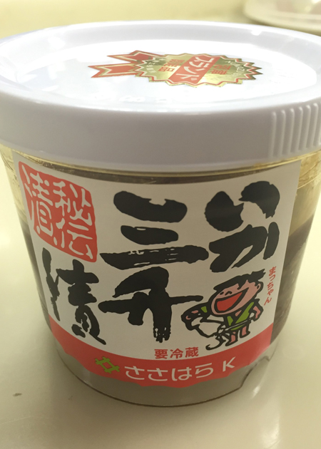 親父がまだ、一線でやっていた頃からの 大切なクライアント。 先日、新商品のパッケージ依頼に 社長が、来社。 土産に、私の好物の いかの三升漬けをもってきてくれた。 この商品も発売から随分経ちます。 今だ大変な人気。 ロングセラーの商品です。 三升漬け 青なんばん・麹・醤油をそれぞれ、 一升ずつの分量で漬け込んだ保存食。 北海道・東北地方の郷土料理である。 もちろん、酒の肴には最適!! 熱い御飯にのっけても、うまいっ!! 塩辛はあまり得意ではない女房も パスタにも合いそうだねーとい...