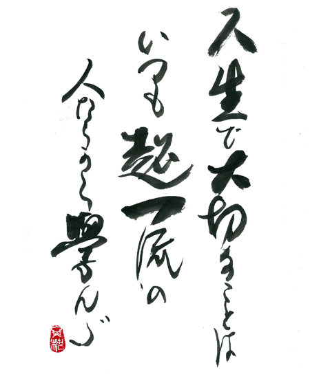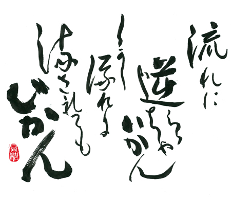 本日のお題は 流れに逆らっちゃいかん。 しかし流れに流されてもいかん。 人の意見を聞き まわりを見渡し 最後は自分の選んだ道を ぶれずに進む Going my way! ということでしょうか? 律子さんへの手紙はコチラ JUGEMテーマ:書と手紙と水彩画と墨