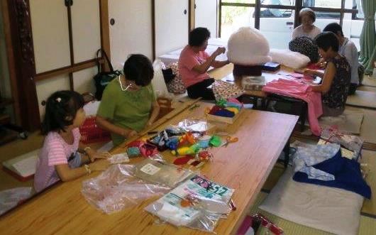 JUGEMテーマ:お知らせ JUGEMテーマ:日々を楽しく JUGEMテーマ:衣のこと ***** 丸亀友の会からの報告です ***** 二学期は、家事家計講習会の準備一色になるので 今年は夏休みを利用して、縫う会を開くことになりました。 毎週木曜日で、四回行いました。 * 暑い中、みんな参加してくれるかなと心配しましたが 毎回6〜7人が集まり、めいめい思い思いの作品作りに 楽しく精を出しました。 * セールの最作品(鍋帽子・エプロン・人形ぶとん 子どものスモックエプロ...