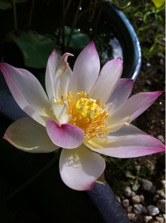 JUGEMテーマ:蓮&睡蓮を育てる おはようございます。 笑福Lotusです。 わたしが趣味でやっている! 蓮の栽培 今朝素敵に開花しました。 雨が降ってなくてよかったー。。 開口〜開花。 今日が最も美しく咲く日です。 クンクンと匂いを嗅ぐと 蓮茶の香りがほんのりと♩