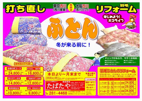 ふとん専門店 たばたや huton-tabataya.com | 2017.09.08 Fri 15:40
