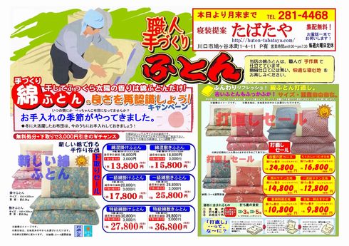 ふとん専門店 たばたや huton-tabataya.com | 2016.06.23 Thu 19:54