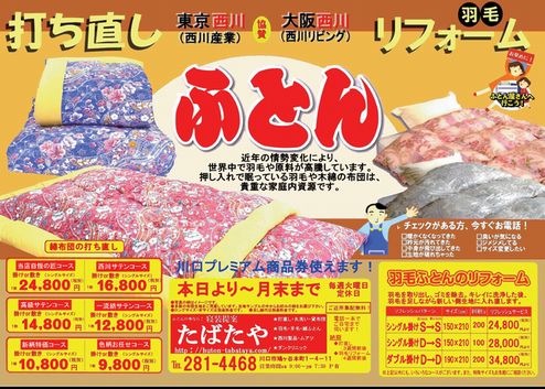ふとん専門店 たばたや huton-tabataya.com | 2015.10.23 Fri 18:00