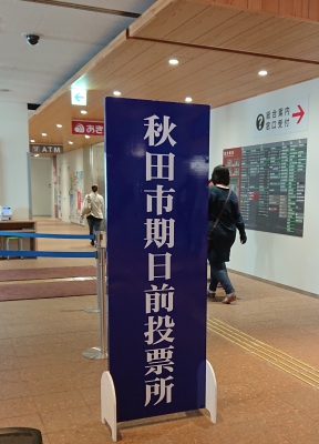 JUGEMテーマ:社会問題 4月4日は秋田は選挙投票日 今回は秋田県知事、秋田市長、 秋田県議会議員と秋田市市議会議員補欠選挙 の4つの選挙という大事なものだ。 職場から近い市役所まで早速期日前投票に行ってきた。 昼間とはいえ、20名近くは並んでいた。 かつて市会議員はお世話になった方に1票。 知事と市長、県議は思うところがあり、各1票。 選挙は大事なのだ。H