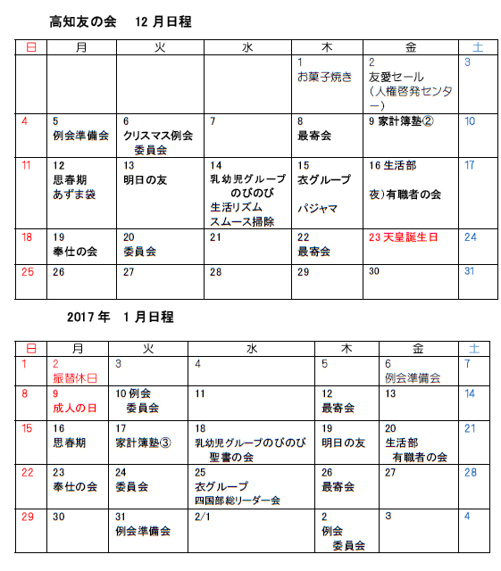 JUGEMテーマ:お知らせ JUGEMテーマ:日程 ***** 丸亀友の会からの報告です ***** 2017年1月 月 火 水 木 金 土 2 3 4 5 6 7 9 10 例会 教育三十年 午後:委員会 11 12 家計簿をつける会 13 最寄会 ...