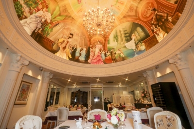JUGEMテーマ:幸せなお金と時間の使い方 「迎賓館ラヴィアンローズ」はバラをテーマに建設された コメットビルの4階にあります。お客様には非日常の空間に身を置いて、 中世のヨーロッパに思いを馳せていただきます。 意味は、フランス語で「バラ色の人生」La Vie en Rose 天井画: 題「舞踏会」の解説 この天井画は「舞踏会」を主題に、手描きによって1年を要し制作されました。 19世紀イギリスで活躍した人気画家ジェームス・ティソとローレンス・アルマ、 アメリカのハドソンリバー派のアルバ...