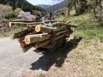 JUGEMテーマ:イタダキモノ。プレゼント。 これで林内車運搬は4往復。 一度に一トン近く運搬しますからすでに4トン運んだことになります。 積み込みはバックホーにガブリッチョを取り付けてつかみます。 かなり便利。 林内車は4速仕様。 これだけ積み込むと3速ぐらいで走ります。 スピードは大股の早足くらい。 ヤードにはこれだけ集まりました。 ...