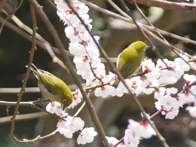 昨年、うちの庭にメジロが大挙して(?)押し寄せたことを書きましたが、 不思議なメジロ目白押し(2013年1月22日の記事) なんと今年も、昨日、来てくれたらしいのです! 両親がいうには、10羽くらい(つまり5ペアですね)来たようです。うちの庭は決して広くはないし、日当りも良くないし 梅の木だって当然まだ花も咲いてないのですが、 メジロご一行様は、うちの梅の木を気に入って下さったのかしら。 だとしたらうれしいですねえ♪ 今年に入ってから、スコーッンと突き抜けたような快晴の日が続いてます。 ↓画像は...