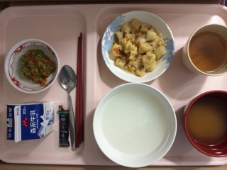 もうだいぶ元気な患者になってきました 気になっていた出血もおさまってきたし♪ そしてとうとう今朝から通常食! 久々のパンヽ(^0^)ノ たくさん歩かなきゃいけないので、 何かと理由をつけて病院の売店へ行ったり 見舞客が来る時は玄関まで迎えに行ったり おかげさまで?排便もかなり順調♪ 同じ手術日で子宮全摘だった同部屋の方と、 症状をよく照らし合わせるのだけど どうやらマヨの方が術後の症状は軽い模様… マヨは元々痛みに強いし 体力はこういう時に役に立つね♪ お昼は久々の白米...