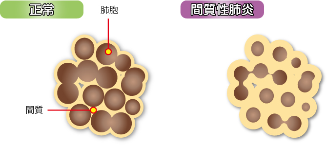 JUGEMテーマ:病気 間質性肺炎には、原因が特定できるものと特定出来ないものがあります。 原因が特定できないものを「特発性」といい間質性肺炎では「特発性間質性肺炎」といいます。 特発性間質性肺炎にはいくつかのタイプがあります。 その中でも「特発性間質性肺炎」が一番多いのです。 特発性間質性肺炎は、間質が線維化してしまい。肺で行われるガス交換の効率が悪くなり、肺活量が低下し、呼吸機能が障害されていきます。 健康な肺...