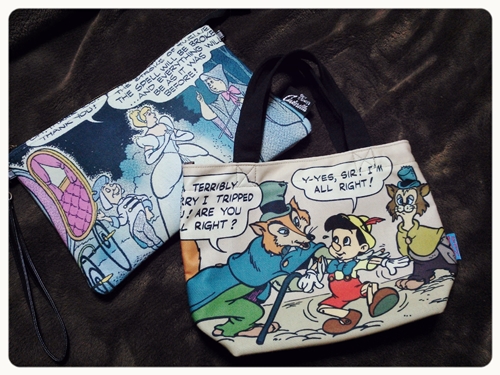 久しぶりにしまむらに行ったらハートをグワッと 鷲づかみされちゃったので買ってしまった物をうpする(・ω・) ◎シンデレラ 2wayクラッチバッグ /¥1900 ◎ピノキオ トートバッグ /¥980 見た瞬間、買うって決めたのだ! どっちもスウェット生地でふわっとしてるの(^o^) ピノキオのトートはフェローとギデオンが居るから勝手にレアだと思ってるよ。 裏はコミック柄〜☆ シンデレラのクラッチはおまけ付きだった。 モバイルケースと小さなポーチも付いて¥1900 ふたつで3000円くらい(・ω...