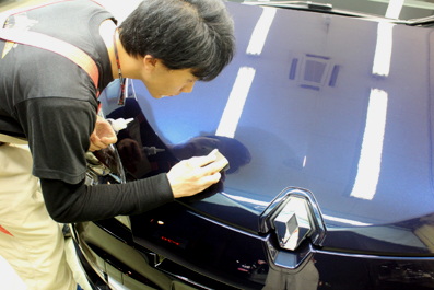 ボディ磨きが終わり、コーティングの作業に入りましたルノー・メガーヌRSさんです。塗装面の整い方でコーティングの密着度合いも断然アップしています!今回ご要望いただきましたのは2年間サポートタイプのコーティングですが、定期的に施工を予定いただけるオーナー様や濃色カラーのお車にはピッタリです^^施工は手作業でのコーティングですが、1パネル毎きっちり仕上げながら入念に作業をすすめます。流れるようなデザインはスポーツカーの存在をアピールしていますね〜^^キレイに変身を遂げたルノー・メガーヌRSさん。気...