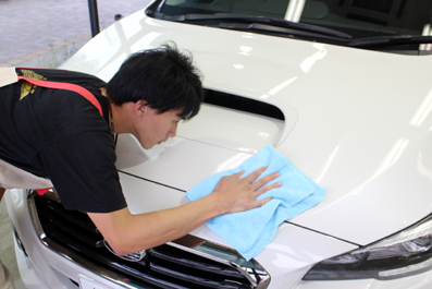 前日からのボディ磨きを終えて今日はコーティング完成までもう少しです。磨き後の脱脂作業を入念に行っています^^少しでも油分やコンパウンドが残っていてはイケないので、しっかり確認しながらチェック中です。ボディコーティングと平行して樹脂コーティング。樹脂パーツもキレイに脱脂して専用のコート剤を塗りこみます。ホイールも真っ白になって、コーティングしておきます。細かいパーツも磨きながらコーティングの仕上がりをチェック!細部までこだわればキリがありませんが、綺麗を追求しながら作業を進めていきます!...