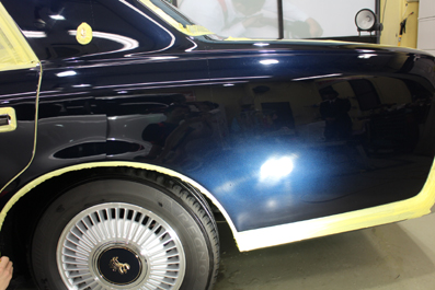 派手に磨きキズの入ったお車が入庫!トヨタ・センチュリーさんです。どうやら鈑金塗装をされたようですが、仕上げが途中のようです^^;2度ほど磨き直しをしてもらったようですが変化がなく、オーナー様も困りに困って相談しに来てくれました。ん〜・・・・。これならオーナー様も困るわな〜^^;ペイント自体は結構上手に塗られているのに・・・。もうちょっと頑張って磨いてあげれば良かったのに。リペイントしてから数日が経っていると聞いていたので、それなら!と、塗膜の硬さをみながらポリッシュ!ん~!気持ちいいくら...