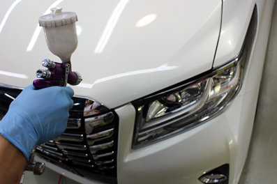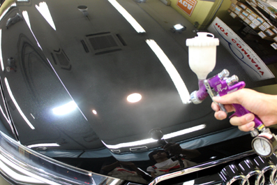 本日もスプレー工法のシリカガラスコーティング!連続ヴェルファイア〜!しかも202ブラック!大きいボディなので、手塗りでのコーティングから比べると面積が大きいので、より一層コート剤を消費しますが、体力的にはスプレー工法の方が手首や肩は疲れないかな〜^^なんて、最近では体力増強していますので、残業もなんのその!(そう思っているのは私だけ^^;)本日(8/27)も定時を過ぎていますが、焦らず丁寧に仕上げていきます!^^vボディコーティングと平行してフィルム施工もご用命いただいています。運転席・助手席...
