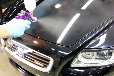 ボディ磨きも終了したボルボV50さんに、引き続きシリカガラスコーティングFXの施工を行います。ボディや細部などガラスコート剤をスプレーで施工します。汚れにくいクルマのベースとなるガラスコーティングです。続いて、昨年からテストを重ねた結果トップコートが新しくなりました。ガラスコートの膜をさらに保護する犠牲膜としてのトップコートです。弾力性もある上、汚れもさらに付きにくく改良されています。施工方法は以前のタイプとは違い、数滴づつバフにつけながらコートしていきます。解りやすいようにボディに付けてみ...