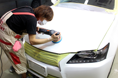 今日のホットカンパニーは、ヘッドライトの表面が白濁し始めているレクサスISさんのヘッドライト・リペアを行っています。レンズ表面、特に上の部分のハードコートが紫外線で劣化して来ており、徐々に広がり始めています。ヘッドライト・リペアは、レンズ表面のハードコート層を完全に取り除いてからUVレジンを塗りこみます。まずは、レンズ表面を一気にサンディング!薄っすら曇った感じのレンズですが、このクモリ具合がUVレジンの密着を高めます。UVレジンはスプレーガンで塗装しますので、車体はレッドライトを残してすべて...