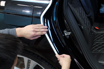 こちらのBMWさんより、ステップガードフィルムをご依頼いただきました。車の乗り降りなど、靴でキズがついてしまうのを保護するフィルムです。素材が透明なので貼り付けてもさほど気にならず、フィルムの表面が痛んで来たら剥がして新しいフィルムを貼り替えれます。乗り降り部分に張っておくだけで、スリ傷防止に絶大な効果を発揮します!^^さらに、ご要望いただいたのが、クオーツガラスコーティング。ガラスの膜で汚れにくい車をつくります!フロントグリルなどの細かい部分もスプレー工法なので隅々まで施工ができちゃいま...