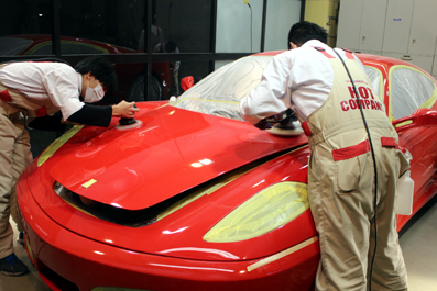 今日のお仕事日記は、フェラーリF430さんの磨きの様子から^^殆ど日も暮れていますが、磨きは夜の方が磨きやすいので^^;今夜は全員で集中して磨きをしています!このイタリアンレッドは、磨けば磨く程にいい艶が出ますね〜^^そんな会話をしながらせっせと仕上げています^^磨いては、チェック!磨いては、チェック!その繰り返しですが、ドンドンキレイになって行くので、作業していても楽しいです^^続きは、明日^^「クルマが輝けば、人が輝き、街が輝く!」株式会社ホットカンパニーフリーダイヤル:0120-6700-32電...
